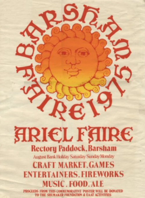 In June 2025, Mosaic Memories was commissioned to create a floor mosaic rooting both heritage and joy within a family home. The brief harked toward the Albion Fairs of the 1970s, when East Anglian fields came alive with theatre, music, and medieval revival. The stylised Sun, surviving here most vividly on a T-shirt, was chosen as the motif. Despite attempts to discover and acknowledge its original artist, they sadly remain unknown. This commission has therefore become both a homage and a remembrance, marking the half-centenary since those gatherings.